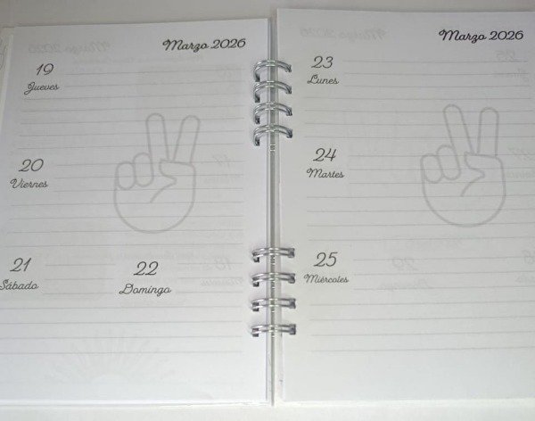 Agenda 2026 semana a la vista, contenido doctrinario y hojas rayadas.