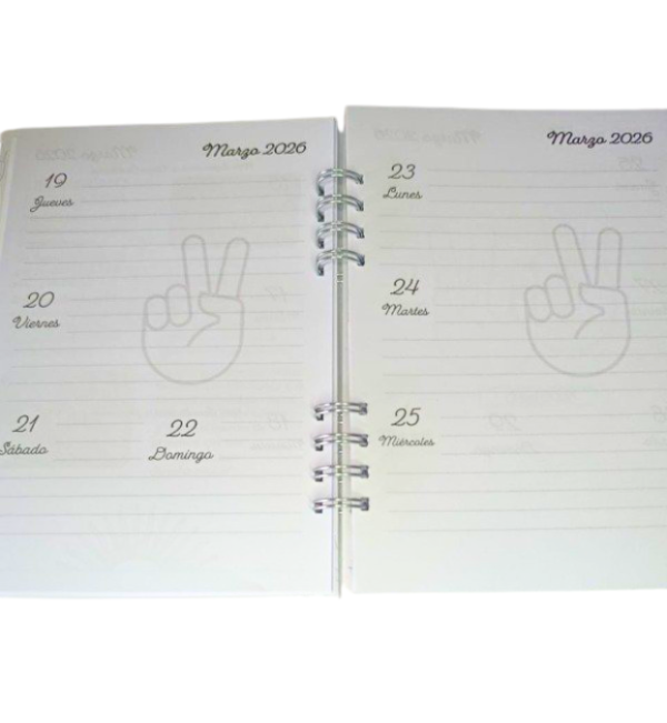 Agenda 2026 semana a la vista, contenido doctrinario y hojas rayadas.
