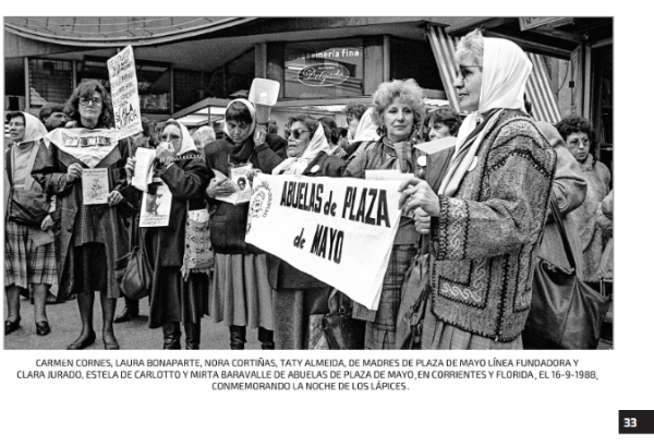 Testimonia la lucha de las Madres de Plaza de Mayo desde sus primeras rondas y otras movilizaciones populares de los '70, '80 y '90.